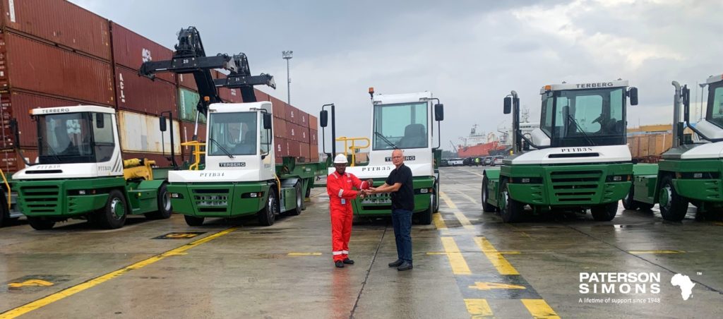 Paterson Simons recently commissioned and handed over 3 x Terberg RT283 RoRo Tractors and 4 x Terberg YT223 Yard Tractors to Ports & Terminal Multiservices Ltd – Tincan Island, Lagos, Nigeria (PTML GRIMALDI).