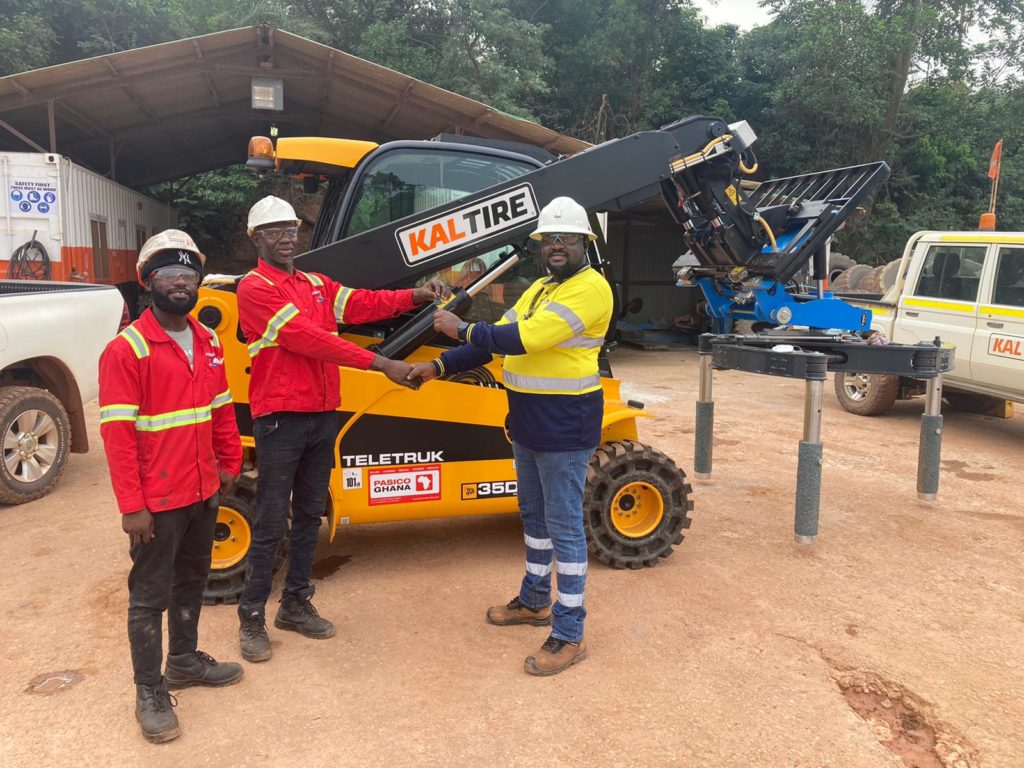 Paterson Simons commissioned and handed over a JCB TLT35D 4X4 Teletruk to customer Kal Tire in Chirano, Ghana in November 2021.
