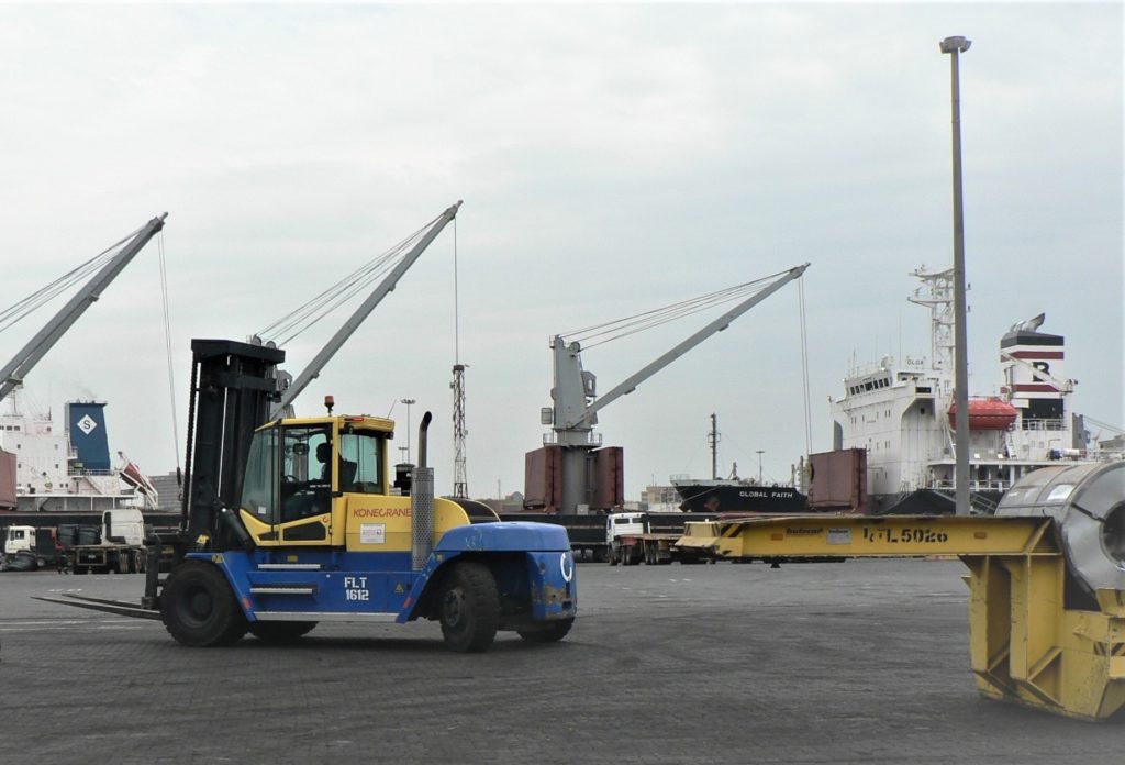 Longstanding Konecranes Lifttruck customer Ghana Ports and Harbours Authority [GPHA] have added 3 x SMV16-1200C 16 tonne forklifts to their existing fleet of Konecranes reachstackers, empty container handlers and heavy forklifts for use in conventional cargo handling in Tema Port.