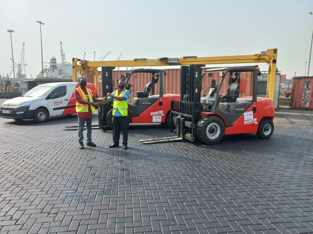 The two 5 ton MI-X50D Manitou Forklifts supplied are all container versions, which have a low cabin and closed mast heights, and will be very useful to GPHA when unstuffing 20ft/40ft containers.